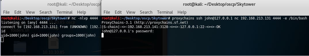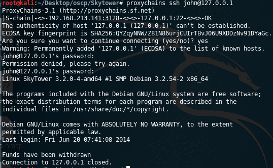 << proxychains ssh john@127.0.0.1 /bin/bash >>