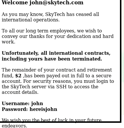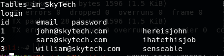 20. There is a table named login in the SkyTech DB which reveals the usernames and passwords of other users. Since we already have John already, we can assume that Sara is another SSH user.