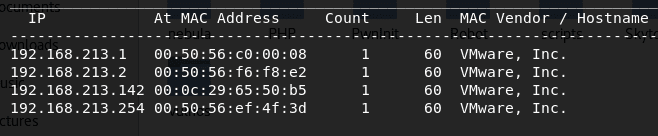 2. Following the routine from the series, let’s try to find the IP of this machine using the netdiscover command. Below, we can see that the IP address has been discovered to be 192.168.213.142.