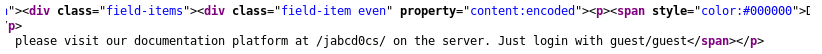 6. Looking into the source code of the Documentation tab, it shows a further link to /jabcd0cs.