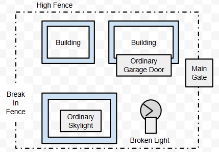 5. (hotspot): The following plant has several security weaknesses. If you were in charge of physical security, which one would you fix or upgrade first?