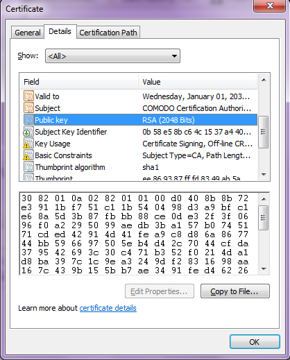 - Signature algorithm: It's used to sign the certificate.
