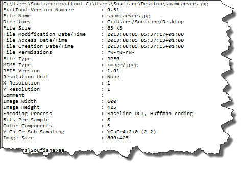 As expected this is a valid JPEG file stored in JFIF format, we can get even more information using another tool called "ExifTool" (You can download the link from the references section) which can help us with handling and manipulating images metadata: