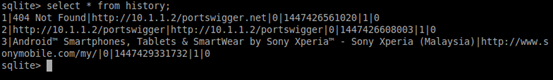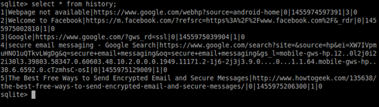 The above figure shows the contents of "history" table in "browser2.db" file.