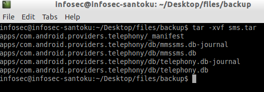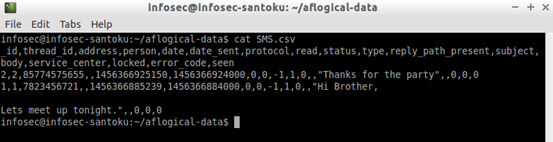 -f /home/sanforensics/smsmms.db -o report.tsv