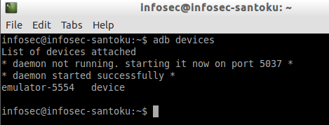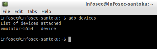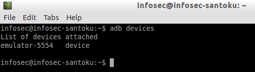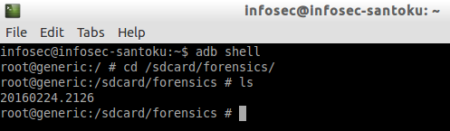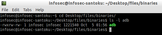 "adb" is an essential tool for interacting with Android devices. We use this utility in multiple scenarios during our journey throughout the Android forensic investigation process. The objective of this exercise is to provide readers the hands-on experience of some popular adb commands that every Android forensic investigator should be aware of. This tool comes preinstalled with Android SDK and it is located in "platform-tools" directory of Android SDK. This is already added to "/usr/bin" folder of Santoku and hence we don't need any explicit setup to use this tool in Santoku.
