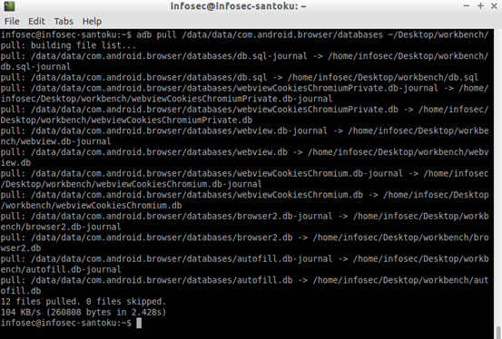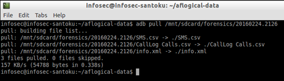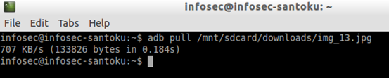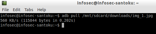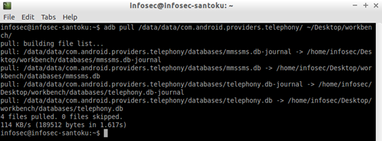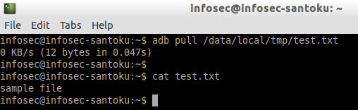 We can also use adb to pull files/data from the device to our workstation using the following syntax.