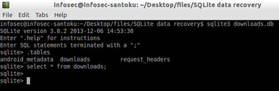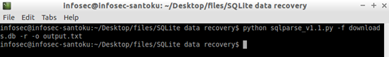 "sqlparse.py" tool and downloads.db file have been provided in Santoku VM under "~/Desktop/files/SQLite data recovery/" directory.
