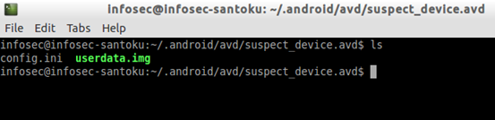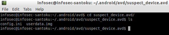 Navigate to "suspect_device.avd" folder and check the files as shown below.