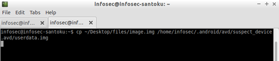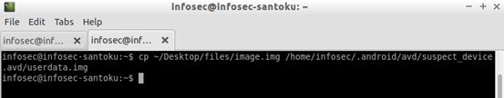 Using the above command, we are copying a file named "image.img" from "~/Desktop/files/" location to the location of our target AVD.