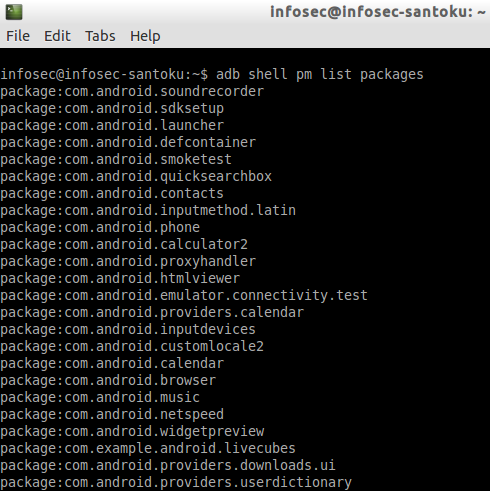Once after getting a shell on an Android device using adb, we can interact with the device using various APIs available through the shell. "Listing the installed packages" is one such example which uses "pm," which stands for the package manager.