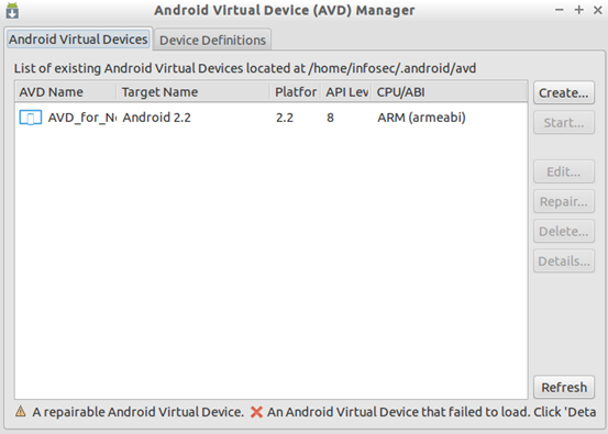 We will begin this exercise with setting up an Android virtual device, which is required for practicing all the adb commands in this lab.