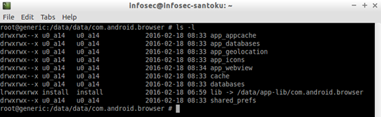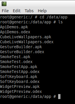 Now, let's check if the "data partition" is mounted or not. We can do it by navigating to "/data/data/" directory on the emulator and see the listing of folders. If we find the folders with the app names that are on the real device (that are not from the newly created emulator), it means our image is properly mounted. The following figure shows the output listing of "/data/data/" folder.