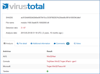 Only major AVs detects this file as Trojan: Win32/Tracur.AV.