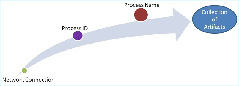 Once the network connections are extracted, it will be listed with an associated process ID (PID). Here, an analyst can now determine the name of the program that was associated with the network connection. This process can be done by mapping the PID to the process name.