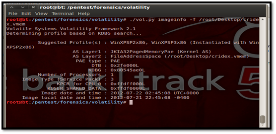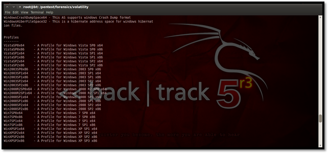 For performing analysis using Volatility we need to first set a profile to tell Volatility what operating system the dump came from, such as Windows XP, Vista, Linux flavors, etc.