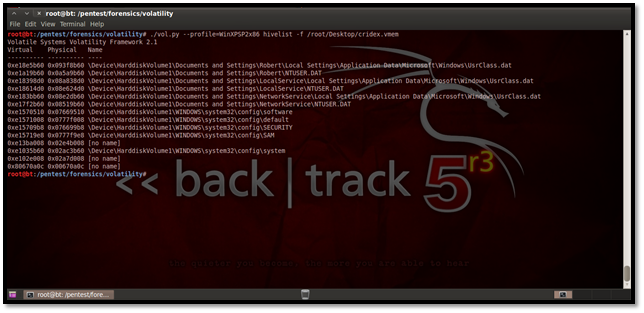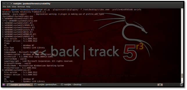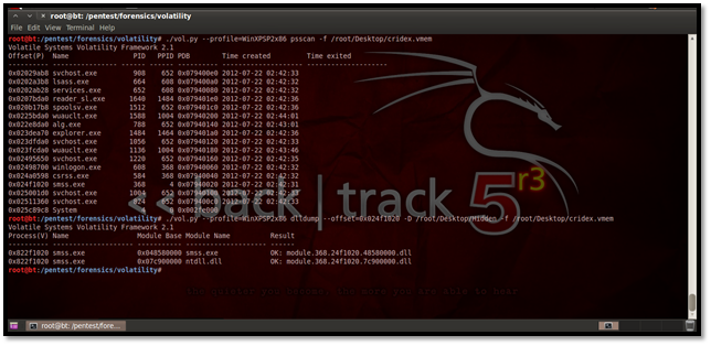 So this shows how we can use Volatility for forensic analysis of a captured physical memory image.