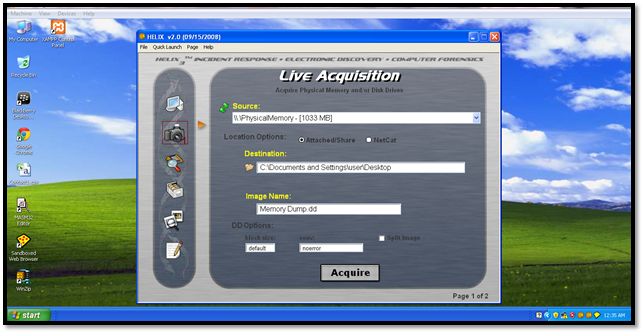 Simply set the destination and the image name and press Acquire. This gives us the memory dump of our physical memory.