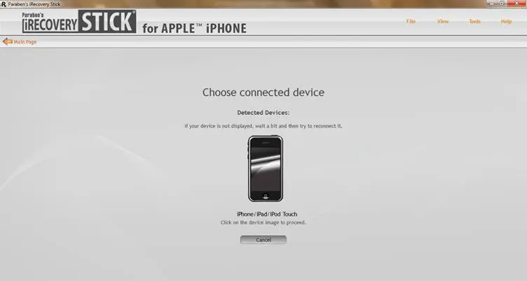 The iRecovery Stick is very simple to use. Simply connect the iPhone to a Windows-based computer with the USB cable and then connect the iRecovery stick to the same computer through a USB port. Once the two devices are connected, run the iRecoveryStick.exe program. The Welcome screen of the iRecovery stick software is shown in the image below:
