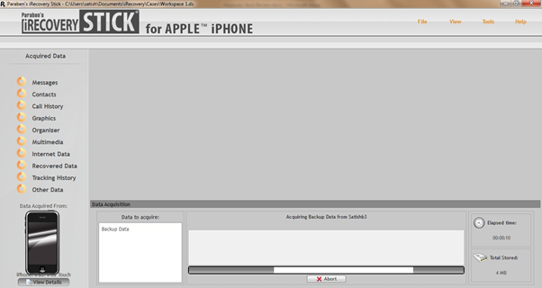 Paraben's iRecovery stick is a simple to use tool for data recovery for iOS devices. It recovers most of the data from the device; however, it does not recover deleted files from the file system. Due to this limitation, it may not be a great tool for forensic investigators. However this is the perfect device for employees, parents, spouses, boyfriends and girlfriends who want to spy or recover deleted SMS, contacts, call history and web history from iOS devices.