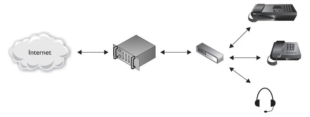 Voice over IP (VoIP) is a collection of protocols and technologies that allows software and hardware to transmit voice and other media over an IP network. Many consumers and organizations of all sizes currently use VoIP phones instead of traditional landlines. VoIP can provide organizations with cost savings while providing end users with other advantages such as location portability and call clarity. Along with these great advantages, VoIP also brings new security considerations and new sources of security vulnerabilities. The primary components of VoIP are hardphones, softphones, and IPBXs. Hardphones are standalone pieces of hardware resembling traditional phones. Softphones are implemented in software running on a client such as a desktop workstation or a laptop. An IP PBX (or IPBX) is responsible for setting up connections and performing all the functions of a private branch exchange (PBX). Figure 4-3 shows a simple VoIP network that uses a software-based PBX.