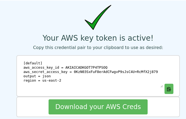 This canary token is triggered when someone uses this credential pair to access AWS programmatically (through the API).