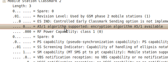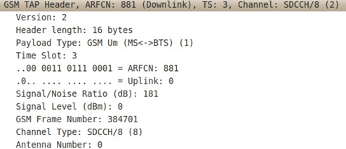 Picture 14. Sample GSM packet captured using RTL-SDR and analyzed using Wireshark.