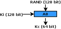 - A8 is an algorithm that's being used to calculate Kc. Ki and RAND are inserted into the A8 algorithm and the result is Kc. The A8 algorithm exists on the SIM card and the AuC.