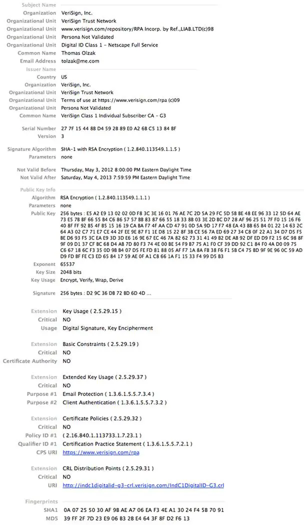 Using the root certificate, the application verifies the issuer signature (fingerprint) and ensures the subject certificate is not expired or revoked (see below). If verification is successful, the system/application accepts the subject certificate as valid.