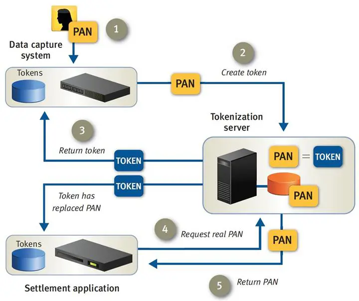 Our example reflects a process occurring in financial institutions. However, it also applies to retail stores. If a store's payment processor uses tokens, the retail point-of-sale system can retain payment card information (with the PAN replaced by a token) and retain compliance with the payment card industry data security standard (PCI DSS).