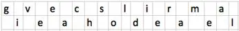 Other attempts to hide the meaning of messages included rearranging letters to obfuscate the plaintext: transposition. The rail fence transposition is a simple example of this technique. See Figure 7-4. The plaintext, "giveeachsoldierameal," is written with every other letter on a second line. To create the ciphertext, the letters on the first line are written first and then the letters on the second. The resulting cipher text is GVECSLIRMAIEAHODEAEL.