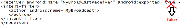 - Setting android:exported attribute's value to false
