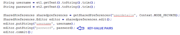 As we can see in the above figure, we have created a SharedPreferences instance and then we are using it to insert data into the xml file using Editor object.