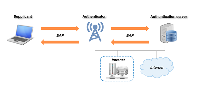 This technology relies on the Extensible Authentication Protocol (EAP) to send messages between the supplicant and the authentication server, allowing multiple implementations for corporations to encapsulate the packets: EAP-TLS, EAP-TTLS/MSCHAPv2, PEAP/EAP-MSCHAPv2, PEAP/EAP-GTC, PEAP-TLS, EAP-SIM, EAP-AKA, EAP-FAST and LEAP.