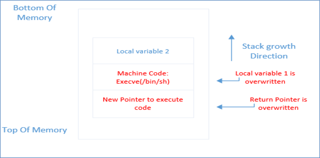 In this case what happens is that the user-supplied input is not properly handled by the function and under the buffer flow. The attacker usually sends machine-specific bytecode, such as /bin/sh in this case, and a new address forf the address pointer. Where will this new pointer point to? You guessed right. This new pointer will point to the new address where attacker code will be executed. But as you can see, this attack has to be very precise to overwrite the variables and return pointer. What are the ways in which attacker does exploit buffer? We will see in the next section.