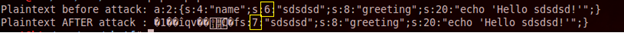 After sending above string, voila!!!, unserialize() does not complain about the garbage received and our shell command is executed successfully!!!!