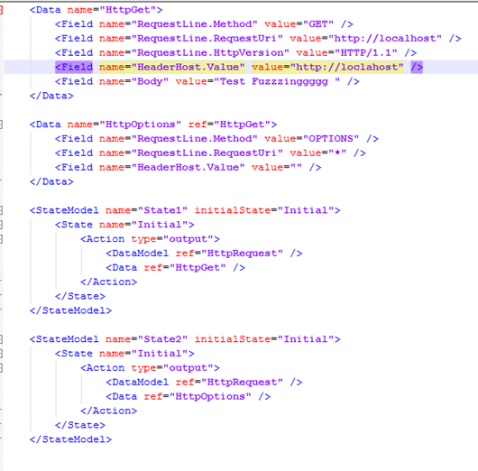 Now, after data modelling and state modelling is completed, our aim is to run the fuzzer against web server. The test element configures a specific fuzzing test that combines a state model with a publisher. (We will discuss more about publisher later). The publisher here is basically targeting our requests to the web server on the localhost.