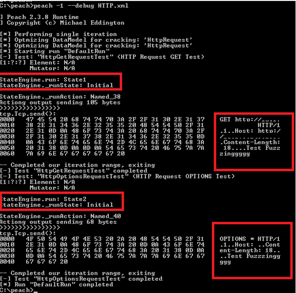 Screen 1: -t flag is to perform the parsing of the Peach XML File.