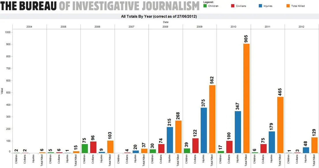 Figure 1 - Pakistan drone strikes: illustrating minimum total casualties - London-based Bureau of Investigative Journalism