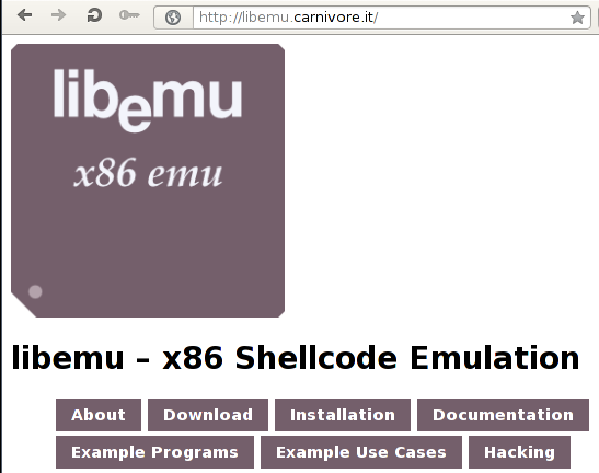 The libemu is a C library written for the purpose of emulating shellcode. The webpage of libemu looks as follows: