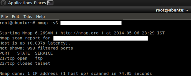 Command: nmap –sS target