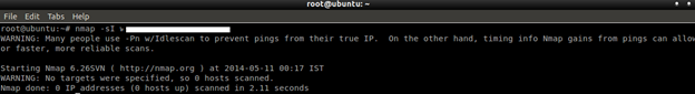 As you can see, there is no response and it shows 100% packet loss. That means we have failed to find the zombie. Again we will check the following step for confirmation.