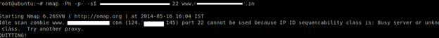 Command: nmap –sI zombie target