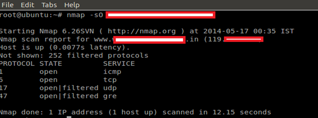 Command: nmap –sO target