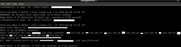 Command: nmap –sU –data-length=value target