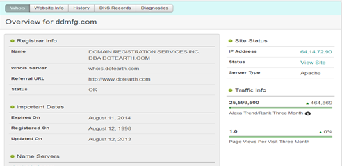 And you will get the whole information of the site which includes the details of Who.is, Website Info, Traffic Info, History, DNS Records, Raw Registrar Data and much more.