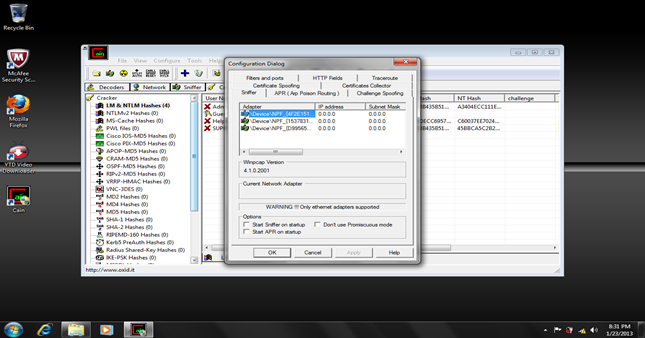 3- Determine the MAC address of the desired Ethernet adapters, write it on Notepad,and then use this information to help determine which NIC to select in the Cain application.