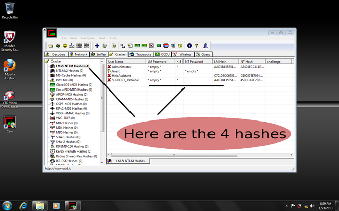 Here are the 4 NTLM and LM hashes which will appear like the following image: