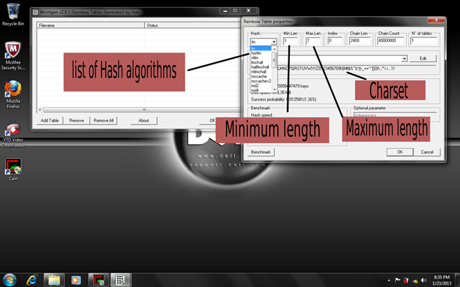 There are many tools that create a rainbow table and there are many rainbow tables already available on the internet.Fortunately, Cain comes with a tool called winrtgen, which is located in its own folder in the installation.