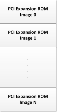 Figure 4 shows the structure of PCI expansion ROM with multiple images. Each image in the PCI expansion ROM must start with a 512-bytes boundary and must contain PCI expansion ROM header. As you will see later, a special field named Last Image Indicator (offset 15h) in the PCI data structure of the PCI expansion ROM indicates whether the image is the last image in the image list or not.